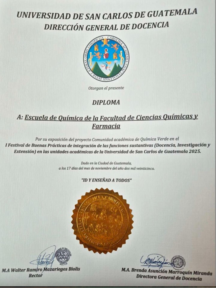 La Escuela de Química fue galardonada por la Dirección General de Docencia en el I Festival de Buenas Prácticas 2025. Este reconocimiento premia la labor de la Comunidad Académica de Química Verde, una iniciativa que integra docencia, investigación y extensión para enfrentar desafíos ambientales.
